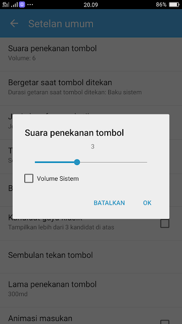 7. Bila ingin disettings bersuara ketika diketik, silahkan sesuaikan volume penekanan tombol sesuai keinginan, dan bila ingin mematikan suara penekanan tombol, geser volume hingga 0. Pilih OK